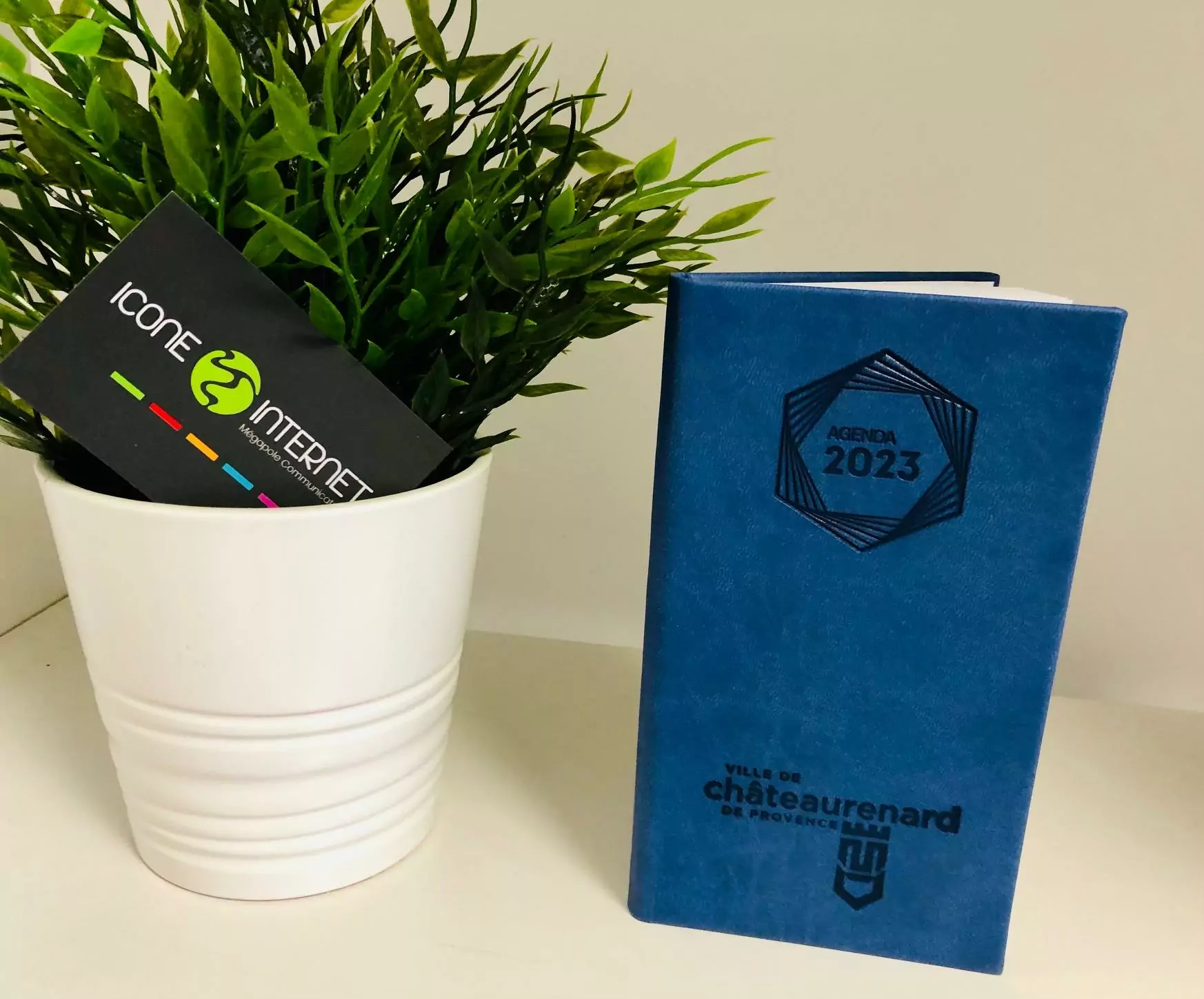 La personnalisation de vos agendas n’est plus un rêve, mais devient réalité avec Icone Internet. Nous vous proposons des agendas personnalisés pour l’année 2023. Dernièrement nous avons reçu deux modèles que nous avons personnaliser pour la Mairie de Chateaurenard, une ville située près d’Avignon. Pour bien débuter l’année 2023, la Mairie se devait d’avoir des agendas uniques et personnalisés. Nous avons marqué les agendas du symbole de la Mairie.