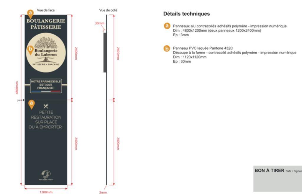 Bureau d’étude pour enseigne de boulangerie : conception, fabrication et pose avec Icone Internet