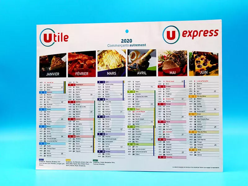 Aussi vous pouvez permettre à vos clients d’avoir votre image ou votre logo toute l’année sur leur bureau. Ce calendrier mural spirale personnalisé est disponible dans des délais express. Commandez puis confiez nous la maquette souhaiteé. Nos graphistes vous rappellent et réalisent en un délai remarquable la création graphique de votre calendrier mural spirale.