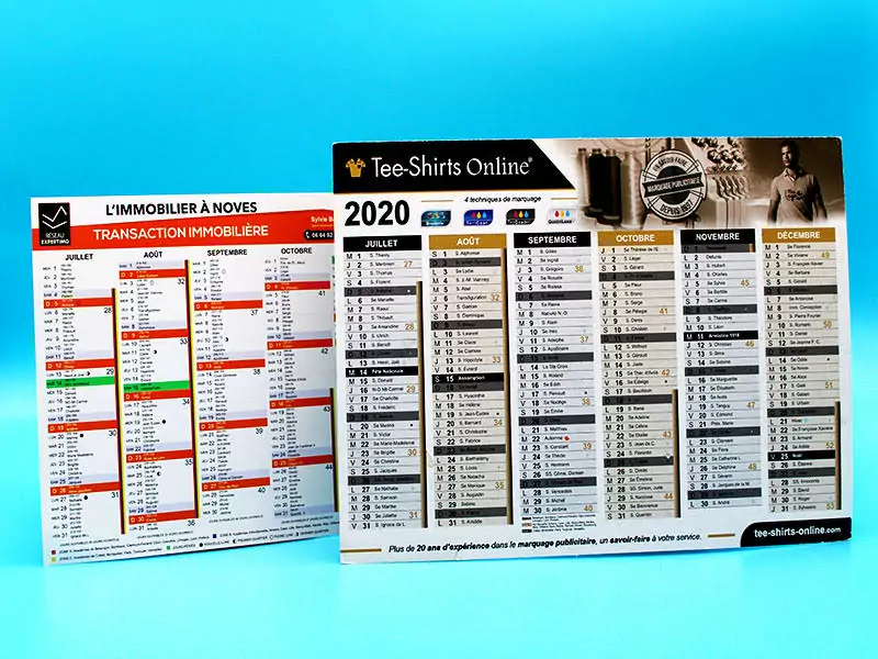 Dans cette page, nous vous proposons des exemples de calendriers effectués pour nos clients. Cela vous aidera à trouver de nouvelles idées pour ces objets publicitaires et avoir une communication percutante !
