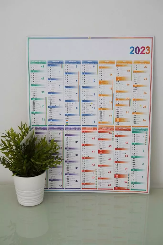 Dans un premier temps choisissez votre modèle de calendrier selon vos gouts et couleurs. Sachez que plusieurs coloris sont disponibles selon les modèles. Contactez nous pour en savoir plus les couleurs de votre calendrier.