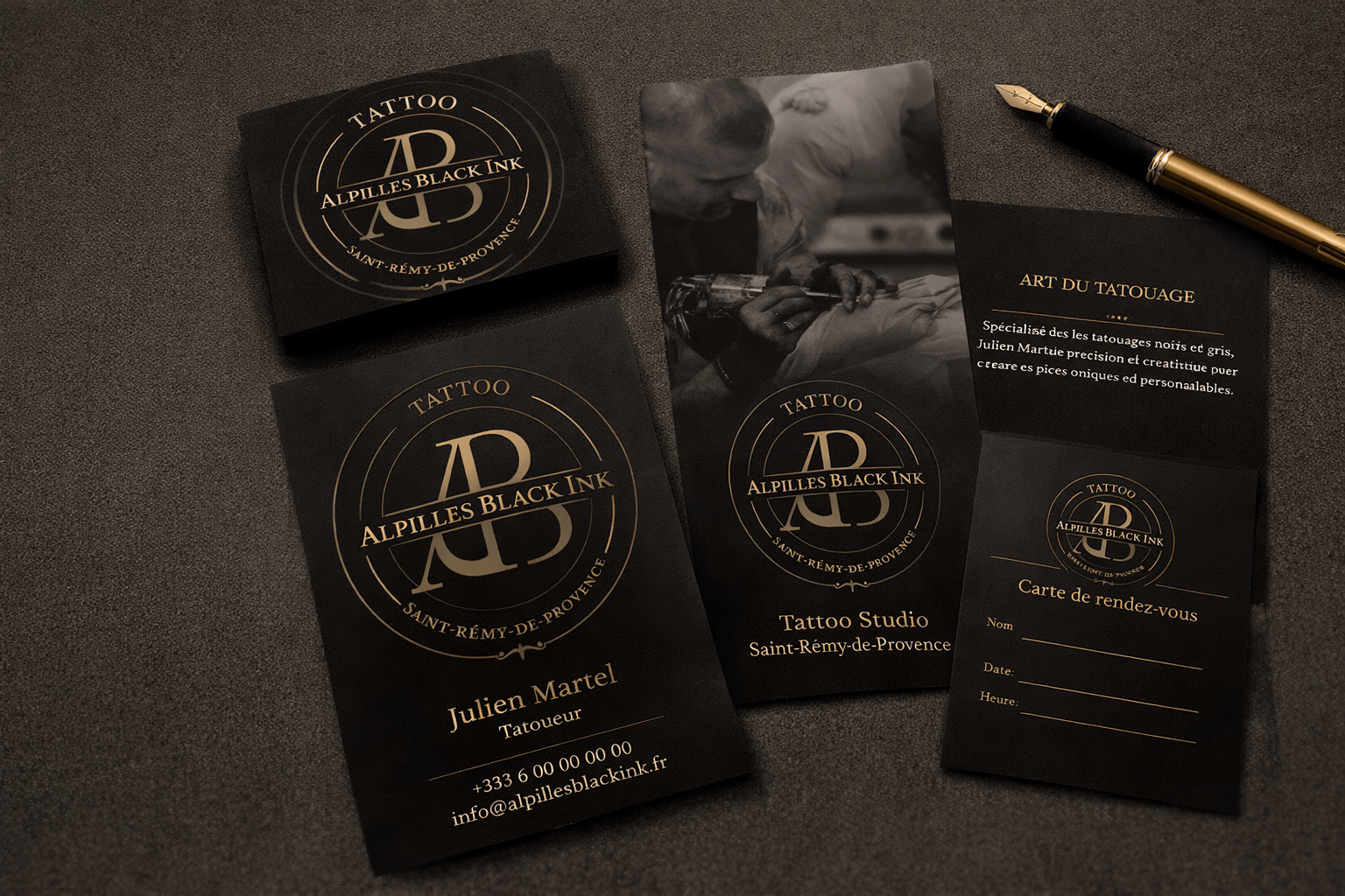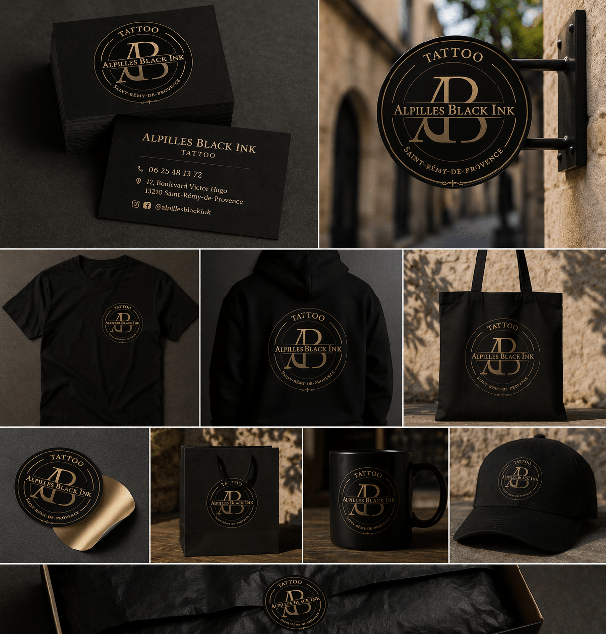 ICONE INTERNET a réalisé la vectorisation du logo du studio de tatouage Alpilles Black Ink, situé à Saint-Rémy-de-Provence. Ce projet illustre parfaitement le savoir-faire de l’agence en matière de design et d’optimisation graphique.