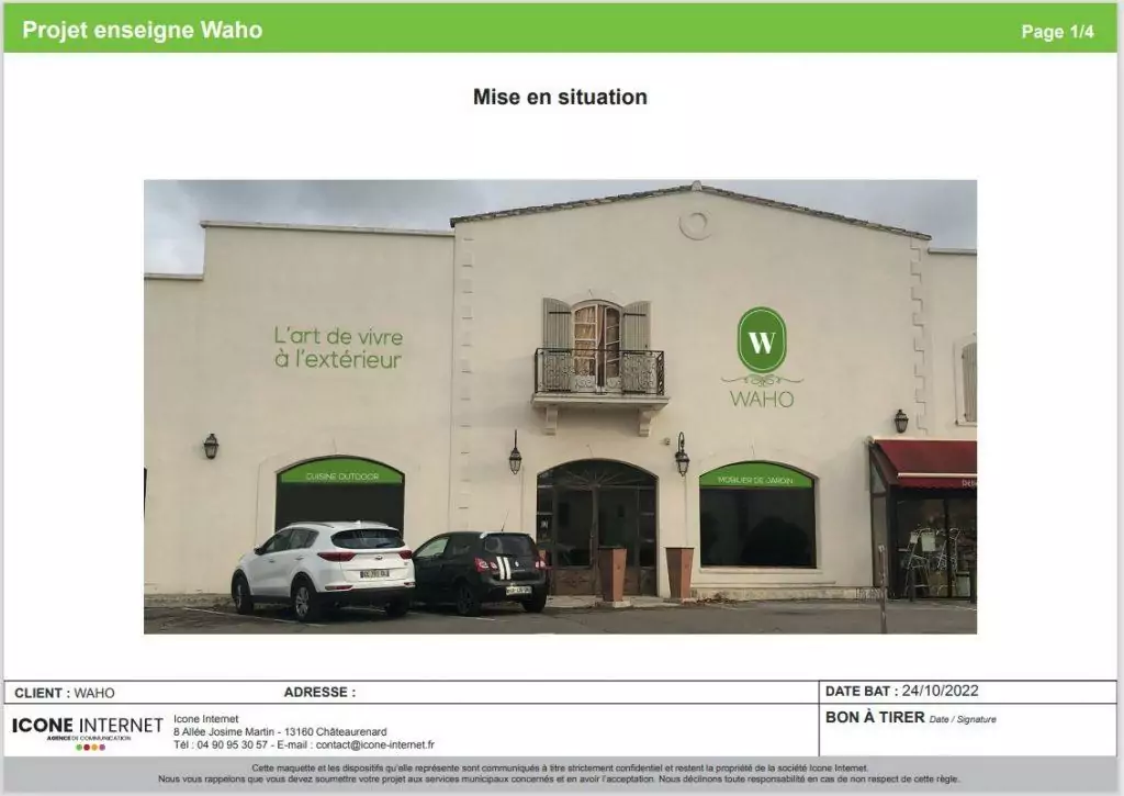 Bienvenue chez WAHO, véritable expert en mobilier outdoor, aménagement extérieur et décoration souhaitant une Enseigne lumineuse Saint Rémy de Provence. Découvrez ce magasin haut en couleurs et en idées pour un univers différent, design et exceptionnel. Notre agence a été contactée pour la réalisation et la pose de l’enseigne. Il fallait bien sur respecter la charte graphique ainsi que les couleurs définies par la charte graphique. Le délai était serré puisque l’ensemble de la prestation devait être réalisé en 1 mois seulement.
