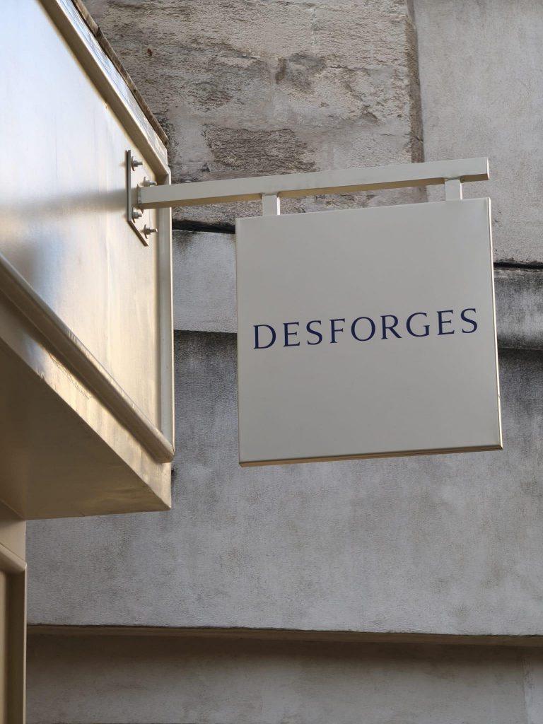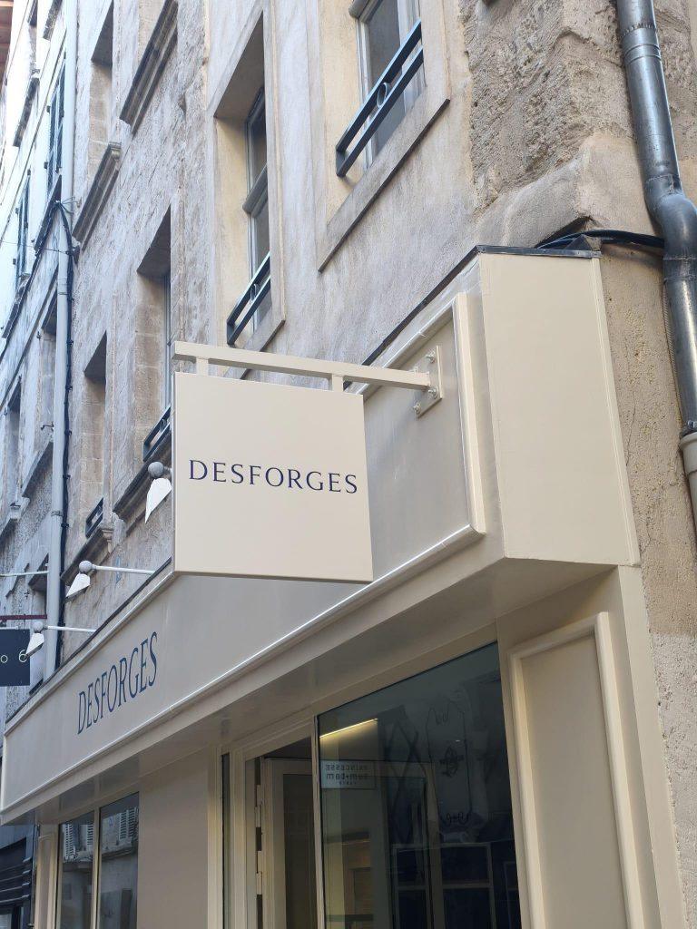 Conception d’une enseigne drapeau sobre, élégante, parfaitement lisible. Fixation murale discrète, format équilibré, identité forte.