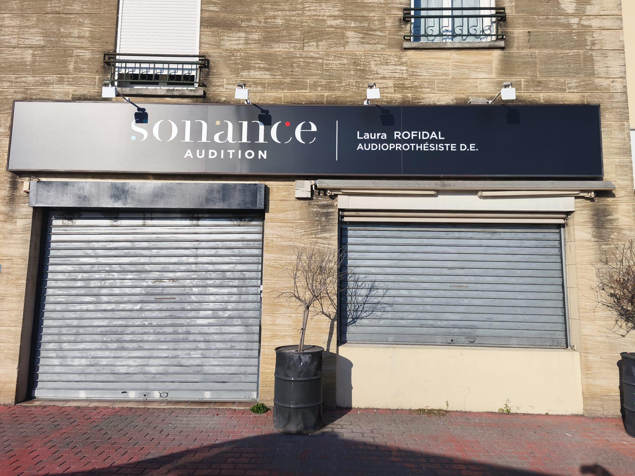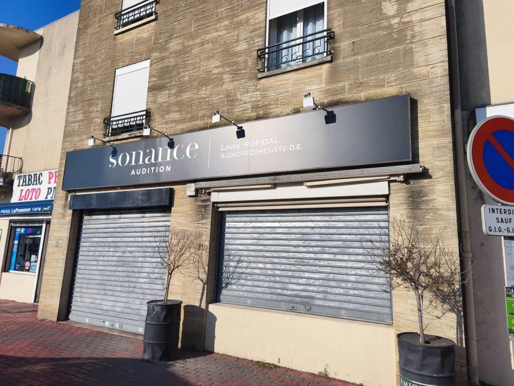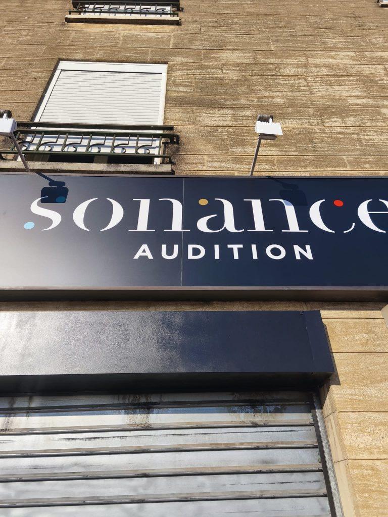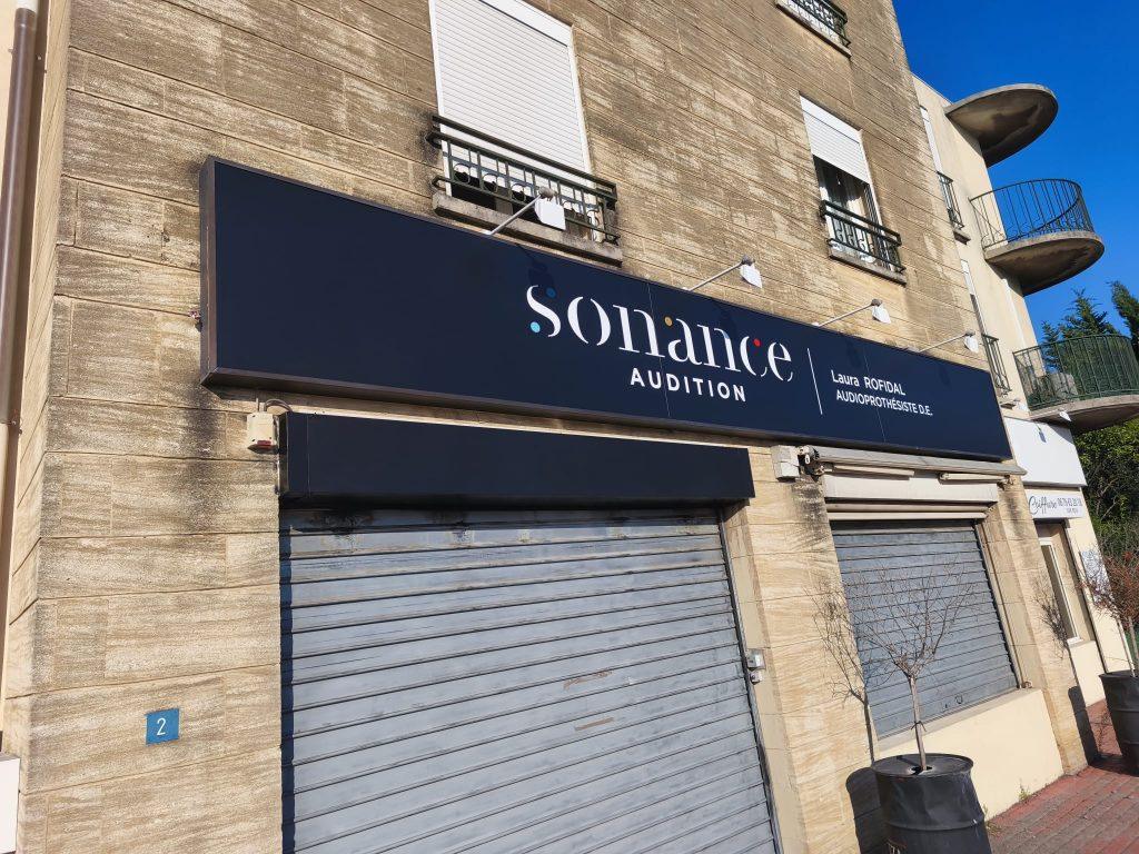 Chez Sonance Audition Arles (2 rue des Lavandis, 13200 Arles) :}, nous avons accompagnés la création de leur enseigne sur mesure :
