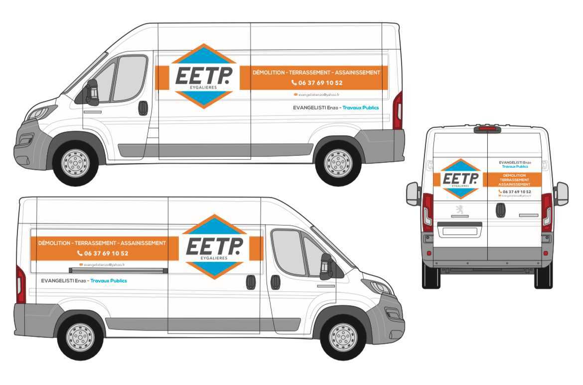 - Visibilité Permanente : Un camion de terrassement floqué avec le logo et les coordonnées de votre entreprise devient une publicité ambulante. Chaque déplacement est une opportunité de visibilité auprès d’un large public.