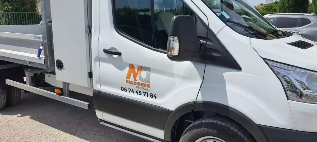 Une entreprise spécialisée dans la maçonnerie a fait appel à nous pour floquer son véhicule. Notre talentueuse graphiste, Orlane, a pris en main le projet. Ils nous ont demandé de réaliser leur logo, des cartes de visite et également le flocage de leur véhicule. Orlane les a reçu plusieurs fois en agence et elle a échangé plusieurs fois au téléphone avec eux pour finaliser tous les designs. Une fois le logo terminé, elle s’est attaqué au flocage. Elle a soumis une première proposition à l’entreprise. Une fois validée, notre poseur Bruno est rentré en jeu. Une fois le superbe travail de notre graphiste terminé, Bruno, le poseur a dégainé ses outils pour floquer le véhicule de NG Maçonnerie. La classe, non ? Un beau travail d’équipe 😉