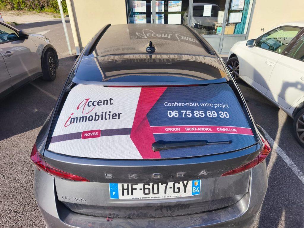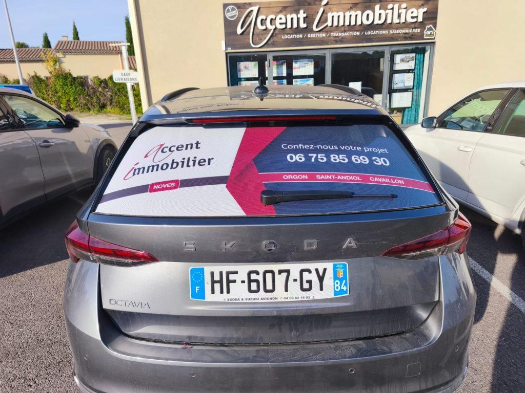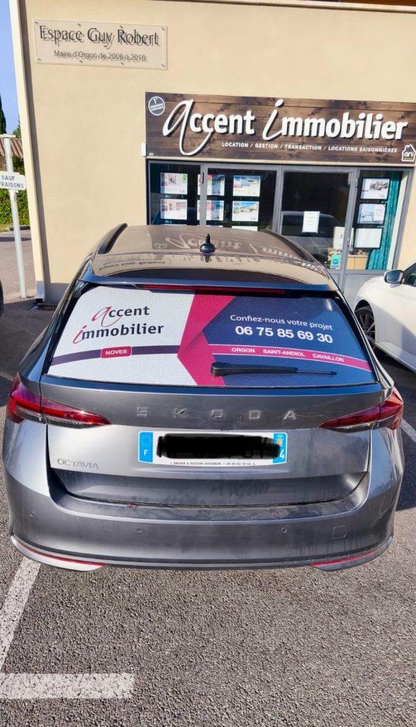 - L’AccentMobile est la voiture de fonction d’Accent Immobilier : l’idée était de la doter d’un visuel fort, identifiable, et qui fasse passer un message partout dans Avignon et ses environs.
