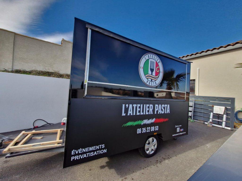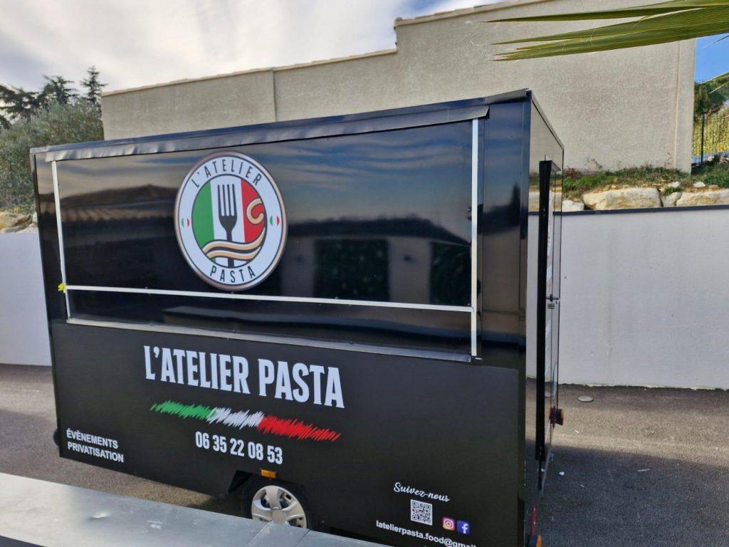 L’atelier Pasta, spécialisé dans la fabrication de pâtes artisanales, a fait appel à Icône Internet pour floquer son food truck et sa remorque.