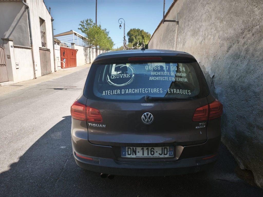 ICONE INTERNET a accompagné la société d’architecte « Mise en Œuvre » dans la conception et la réalisation du flocage de la vitre arrière de son véhicule professionnel.