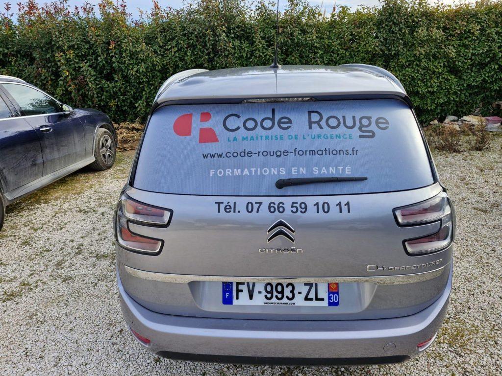 Flocage vitre arrière voiture Salon de Provence : conception, impression et pose par Icone Internet