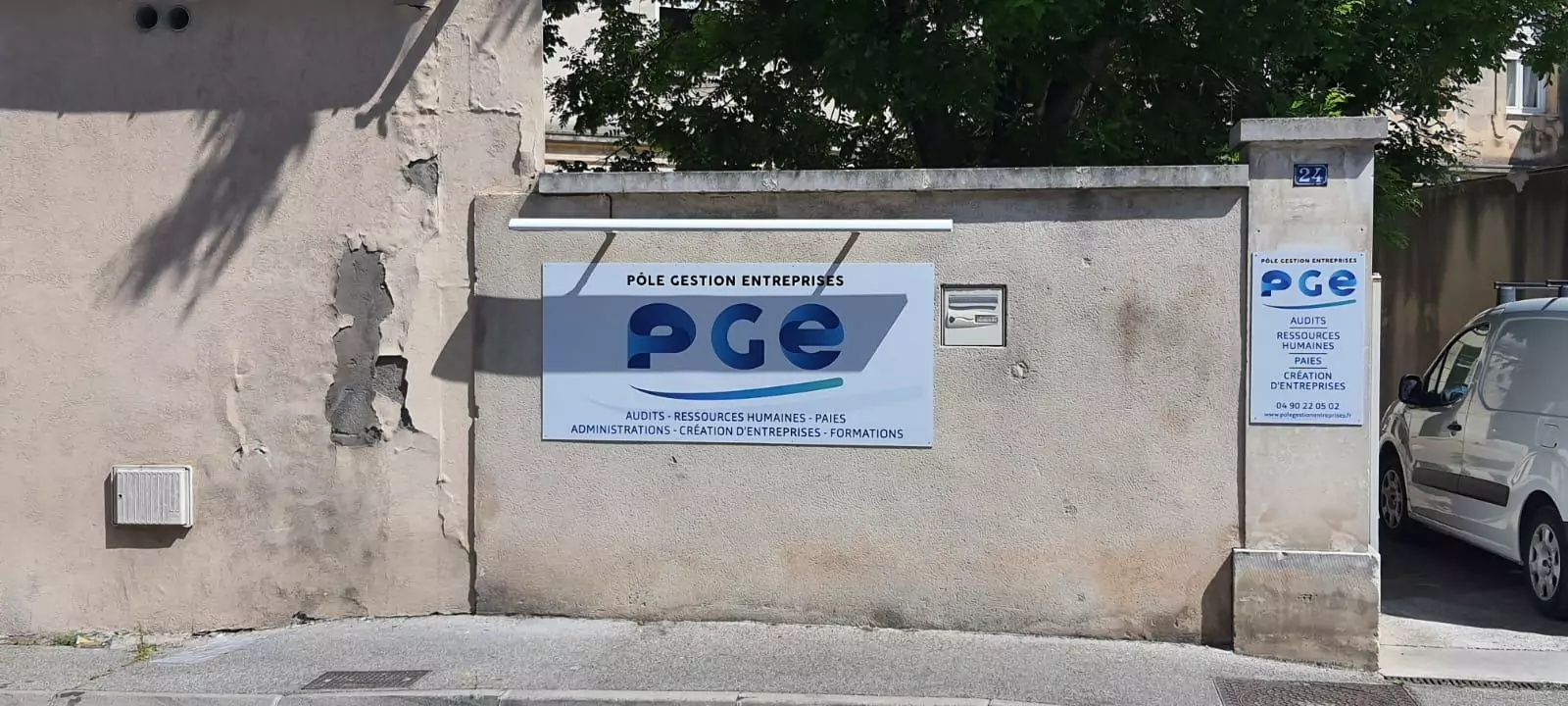 L’équipe d’Icone Internet a encore frappé. L’entreprise PGE a fait appel à nos services pour réaliser la devanture de son commerce. Nous avons réalisé pour elle la création et la pose d’un adhésif sur sa vitrine, ainsi que la pose d’un panneau. Admirez notre travail en image !