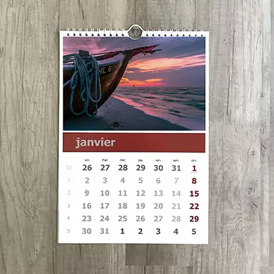 Les calendriers muraux : les calendriers muraux personnalisés sont les plus courants. Ils peuvent être accrochés sur un mur et offrent une vue mensuelle ou annuelle. Ces calendriers sont disponibles en plusieurs formats et peuvent être personnalisés avec des images, des logos ou des slogans.