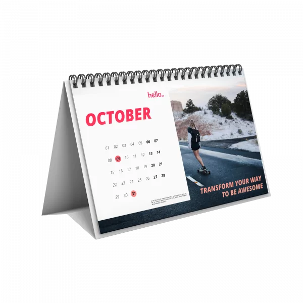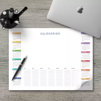 Les calendriers de bureau avec bloc-notes : ces calendriers sont souvent livrés avec un bloc-notes intégré, ce qui en fait un outil pratique pour les réunions et les prises de notes. Les calendriers de bureau avec bloc-notes peuvent être personnalisés avec des images, des logos ou des slogans.