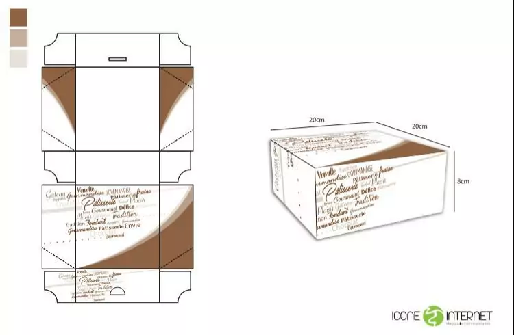 Le spécialiste Packaging Avignon. Icone internet agence de communication située proche d’Avignon dans le Vaucluse est spécialisée en Packaging Boite à gateaux et en particulier dans la conception de de logos et chartes graphique. Nos 3 graphistes salariés en agence sont à votre disposition pour répondre à toutes vos demandes, vos envies et vos besoins. Profitez de leur expérience et de leur créativité pour concevoir le design de votre future marque ou futur produit pour la création de Packaging boite patissière
