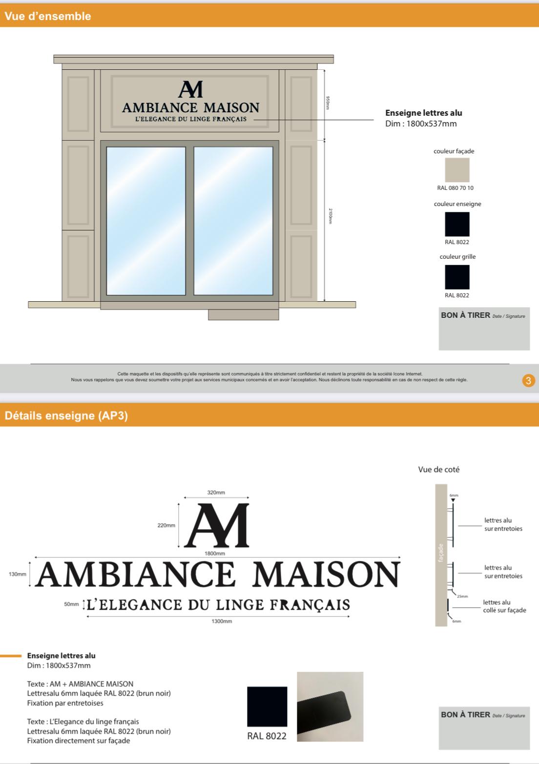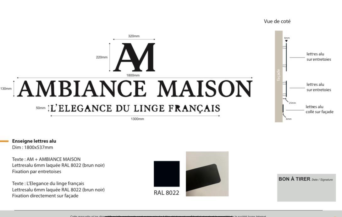 Pour la société Ambiance Maison, située à Saint Rémy de Provence, ICONE INTERNET a réalisé une enseigne élégante et moderne :