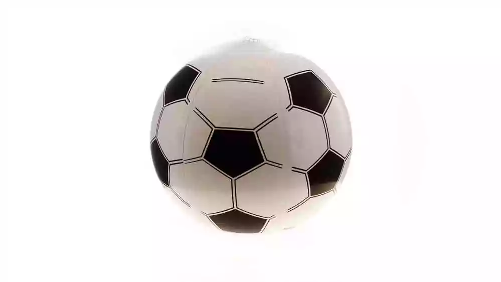 Ballon gonflable en PVC au design rétro inspiré des anciens ballons de football.