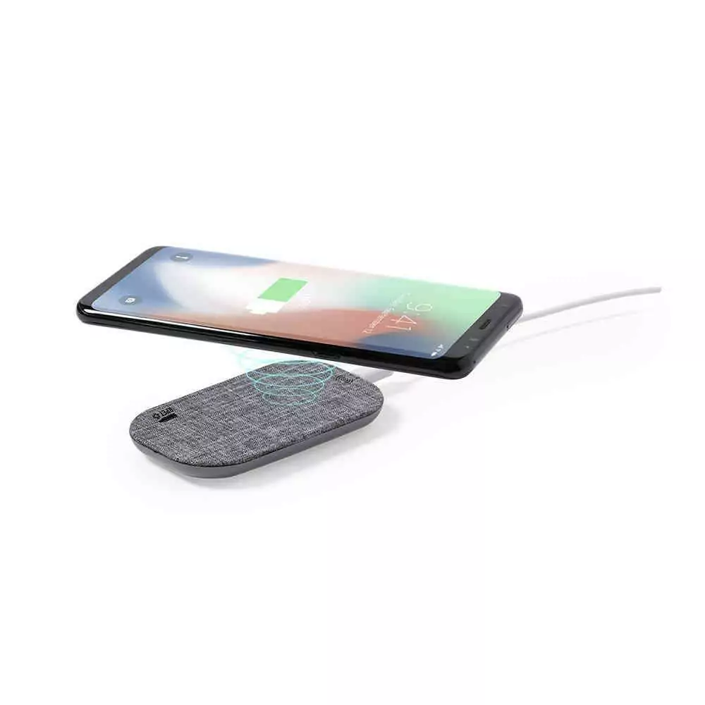 Chargeur sans fil de la ligne Nature, avec un design ovale pratique et une fonction de charge sans fil de 10 W. Fabriqué en polyester RPET, fabriqué à partir de plastique recyclé, afin de promouvoir la réutilisation des déchets plastiques et de contribuer à la durabilité de la planète.