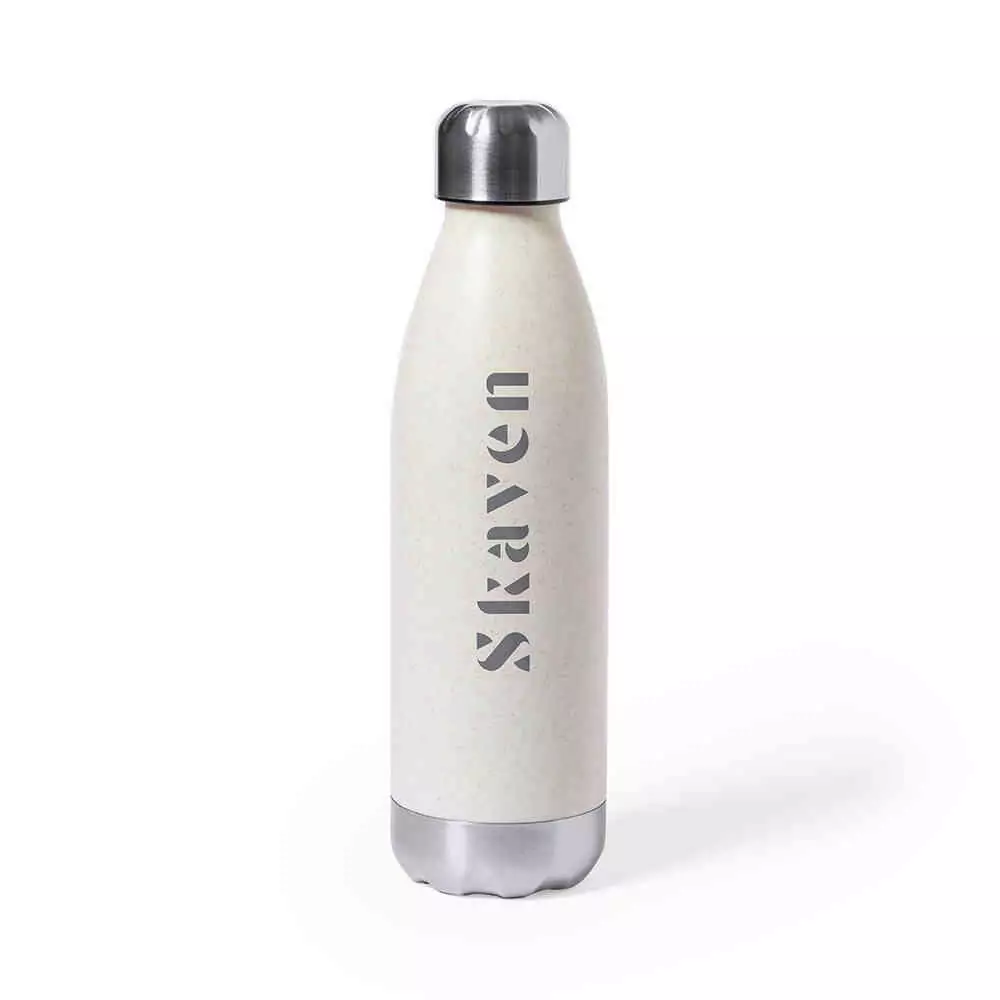 Tambour en combinaison de PE veiné avec base et bouchon en acier inoxydable. Capacité de 700 ml, avec bouchon de sécurité sans BISPHÉNOL A. Certification de qualité alimentaire, garantissant la sécurité lorsque les aliments entrent en contact avec le matériau utilisé pour fabriquer le produit.