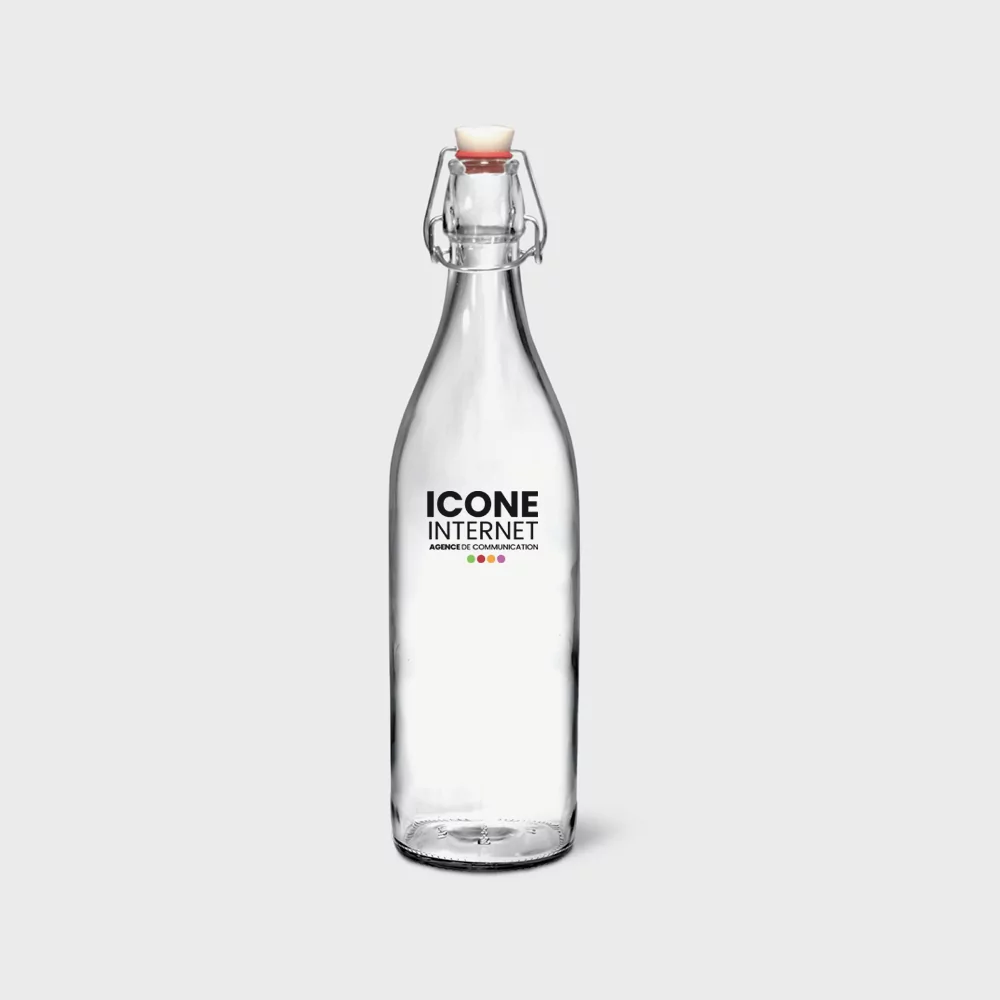 Avec leur bouchon mécanique facilement refermable, les bouteilles rondes d’un litre sont extrêmement pratiques pour le transport et la conservation de vos boissons lors d’événements ou au sein de votre établissement. Personnalisez vos bouteilles rondes à bouchon mécanique avec votre logo en quelques clics seulement !