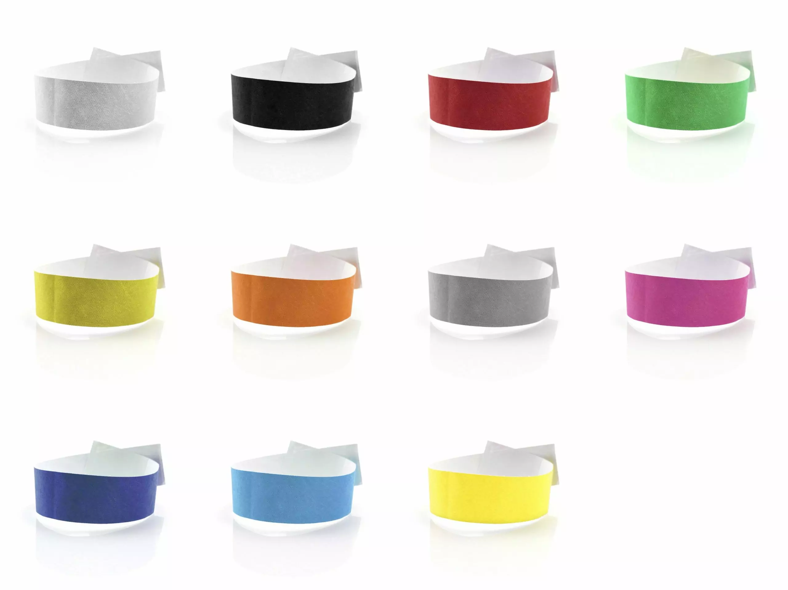 Bracelet en fibre synthétique pour adulte, disponible dans une large gamme de couleurs vives. Avec fermeture adhésive, résistant à l´eau et présenté en planche prédécoupée de 10 pièces avec numérotation individuelle.