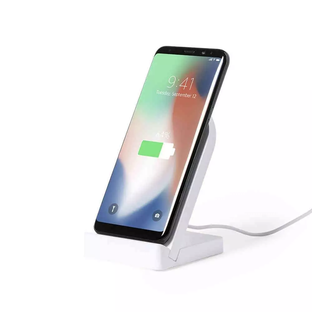 Avec fonction de charge rapide de 10W et compatible avec les appareils équipés de la technologie de charge sans fil. Comprend un anneau métallique adhésif. Câble avec connexion USB de 100 cm. Grande zone de marquage, présentée dans une boîte d’éco-conception attrayante. Badge PLA sur l’article.