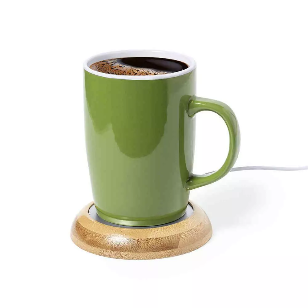 Chauffe-tasse de la ligne Nature, en bambou. Connexion USB et surface métallique spécialement conçues pour maintenir la chaleur, avec base antidérapante en antelin. Présenté dans une boîte individuelle d’éco-conception. Manuel d’instructions disponible en espagnol et en anglais.