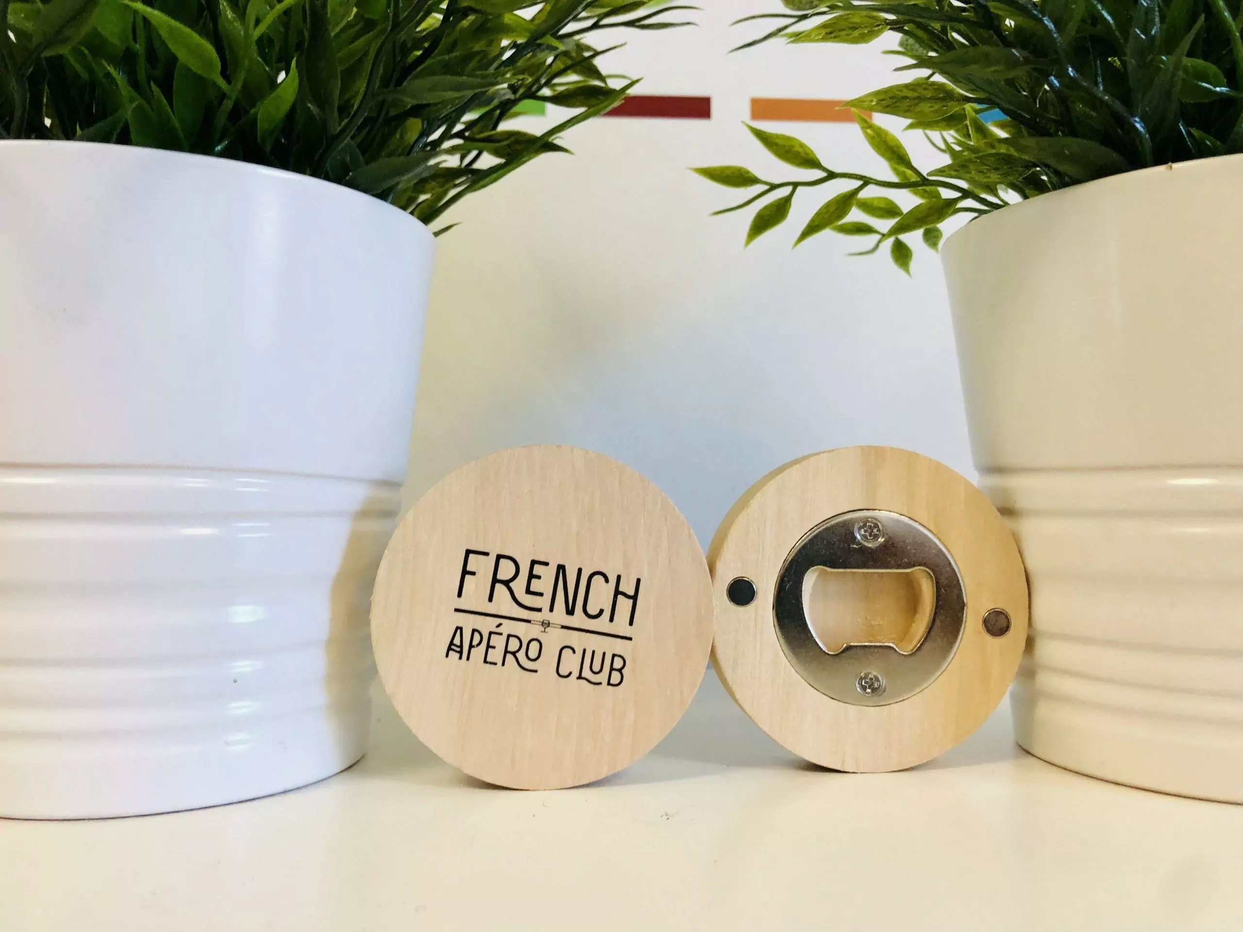 Nous vous proposons cet ouvre bouteille en bois, rond, avec un côté aimanté en acier inoxydable. Parfait pour l’accrocher sur le frigo et ne pas le perdre 😉