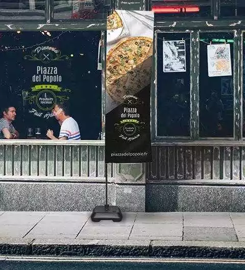 Les drapeaux à vent sont également très populaires, ils sont conçus pour s’agiter avec le vent, attirer l’attention des passants et ajouter une touche de mouvement à l’enseigne du magasin. Les bannières à suspension sont également très utilisées, elles sont suspendues au-dessus de l’entrée d’un magasin et peuvent être personnalisées avec des images ou des textes publicitaires.