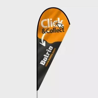 1- Le drapeau en forme de goutte : il convient pour des expositions et des événements fun. Son look dynamique lui donne un style jeune et fashion
