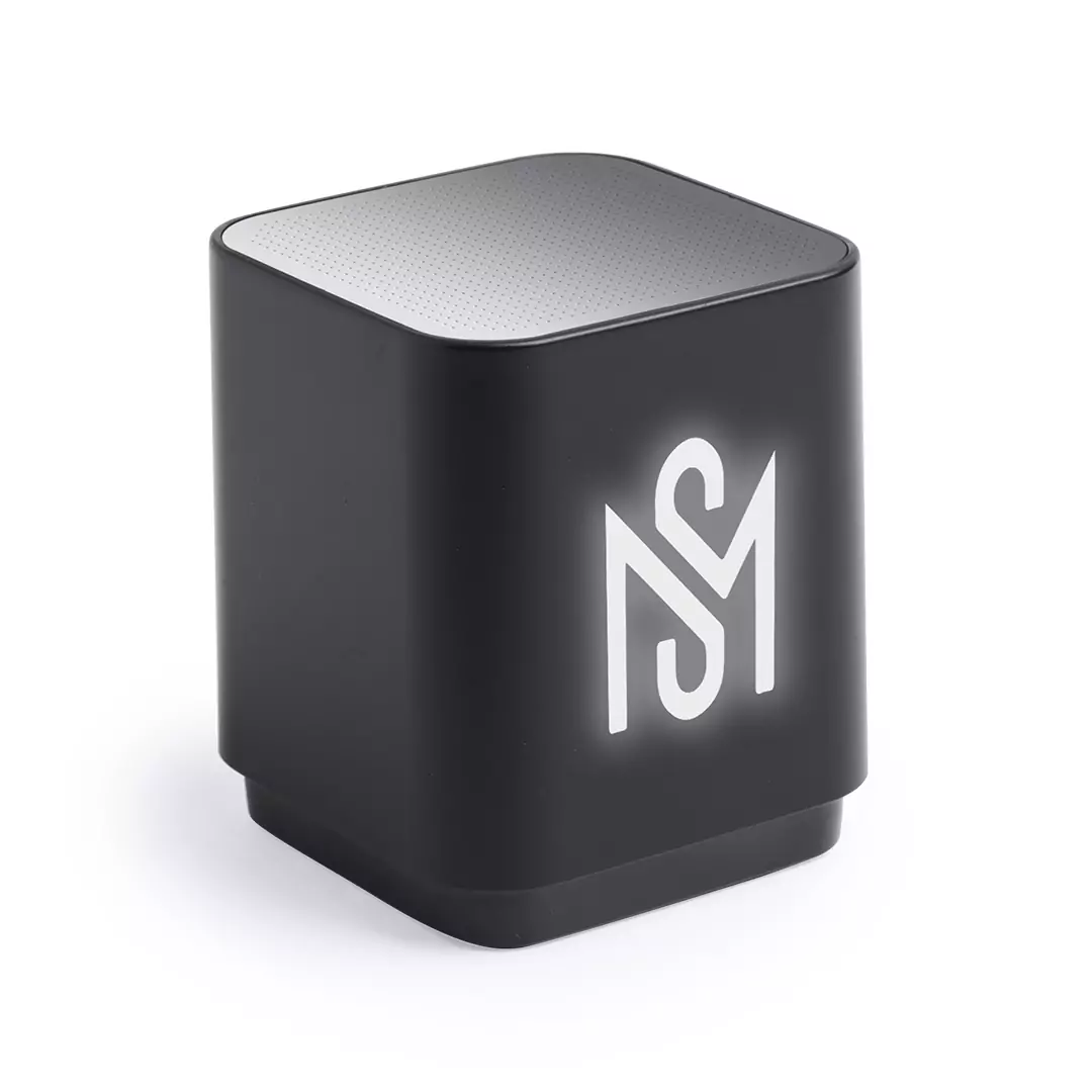 Haut-parleur avec connexion Bluetooth®, lumière LED intérieure et le corps spécialement conçu pour le marquage laser, illuminant ainsi le logo. Avec puissance 3W et fonction mains libres. Rechargeable via câble USB – inclus – et présenté dans une boîte de conception attrayante.