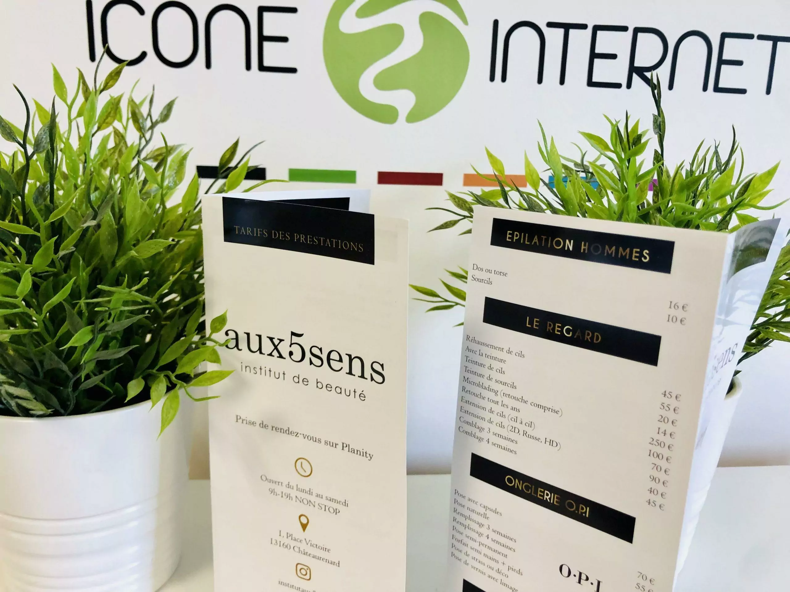 Chez Icone Internet, votre imprimerie de confiance, nous sommes fiers de notre engagement envers la fabrication locale. Nos flyers publicitaires personnalisés sont produits avec soin dans nos installations locales, ce qui garantit un respect des normes éthiques, environnementales et une contribution à l’économie de notre communauté.
