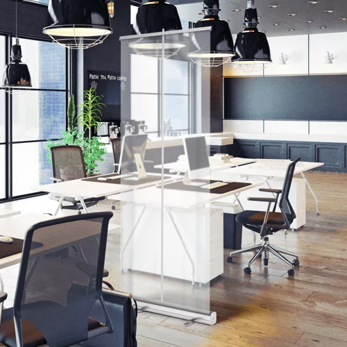Grâce à l’impression des kakémonos roll-up transparents, vous pouvez facilement protéger vos employés face aux clients et les mettre à l’abri du virus.