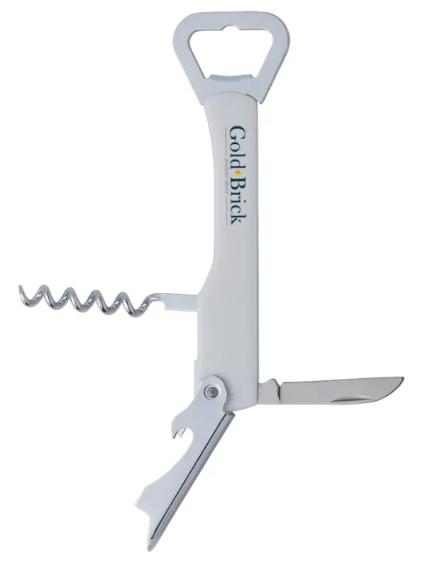 Ouvre-bouteille de serveur en métal avec poignée ABS, 4 fonctions: tire-bouchon, 2 ouvre-bouteilles et un coupe-fil. Par pièce dans une boîte.