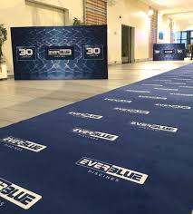 Pour garantir son intégration et son efficacité dans tous les événements, cette moquette est imprimée sur un velours polyester de 400g/m², dotée d’une semelle antidérapante en latex, assurant ainsi une utilisation sans risque en intérieur. Personnalisable à souhait, elle reflète l’identité visuelle des clients à travers l’intégration de leur logo, de messages ou de visuels qui leur sont propres.