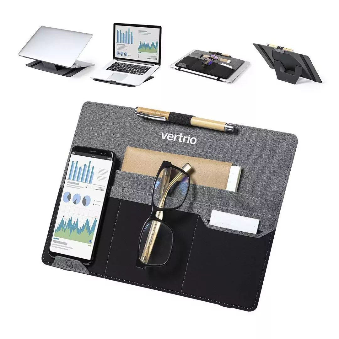 Pratique grâce à ses compartiments où vous pouvez y ranger votre téléphone, votre bloc note, vos stylos etc… Il est aussi pratique à emporter partout avec soi. Que cela soit au bureau ou à la maison, servait vous de ce support pour travailler plus confortablement.