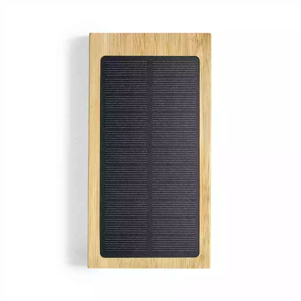 Batterie auxiliaire externe de la ligne nature d’une capacité de 10 000 mAh. Comprend un chargeur sans fil de 5 W, adapté à tous les appareils compatibles avec la charge sans fil, et un panneau de charge solaire. Fabriqué en bambou provenant de forêts durables avec la certification FSC. Il dispose de 2 sorties USB, 1 entrée Micro USB et une entrée Type-C. Avec indicateur d’état de charge et présenté dans une boîte d’éco-conception attrayante. Distinction FSC sur le produit.