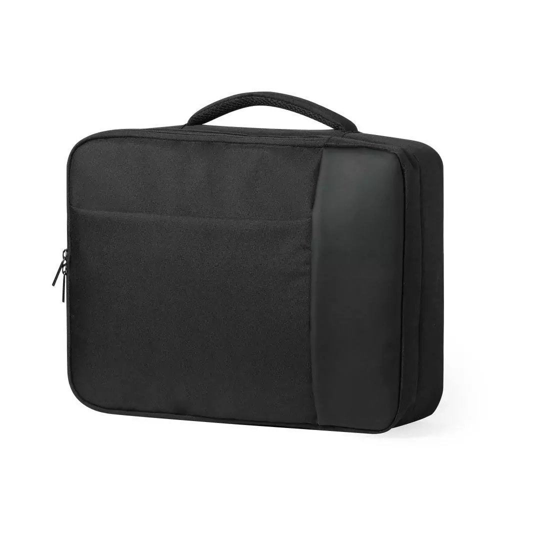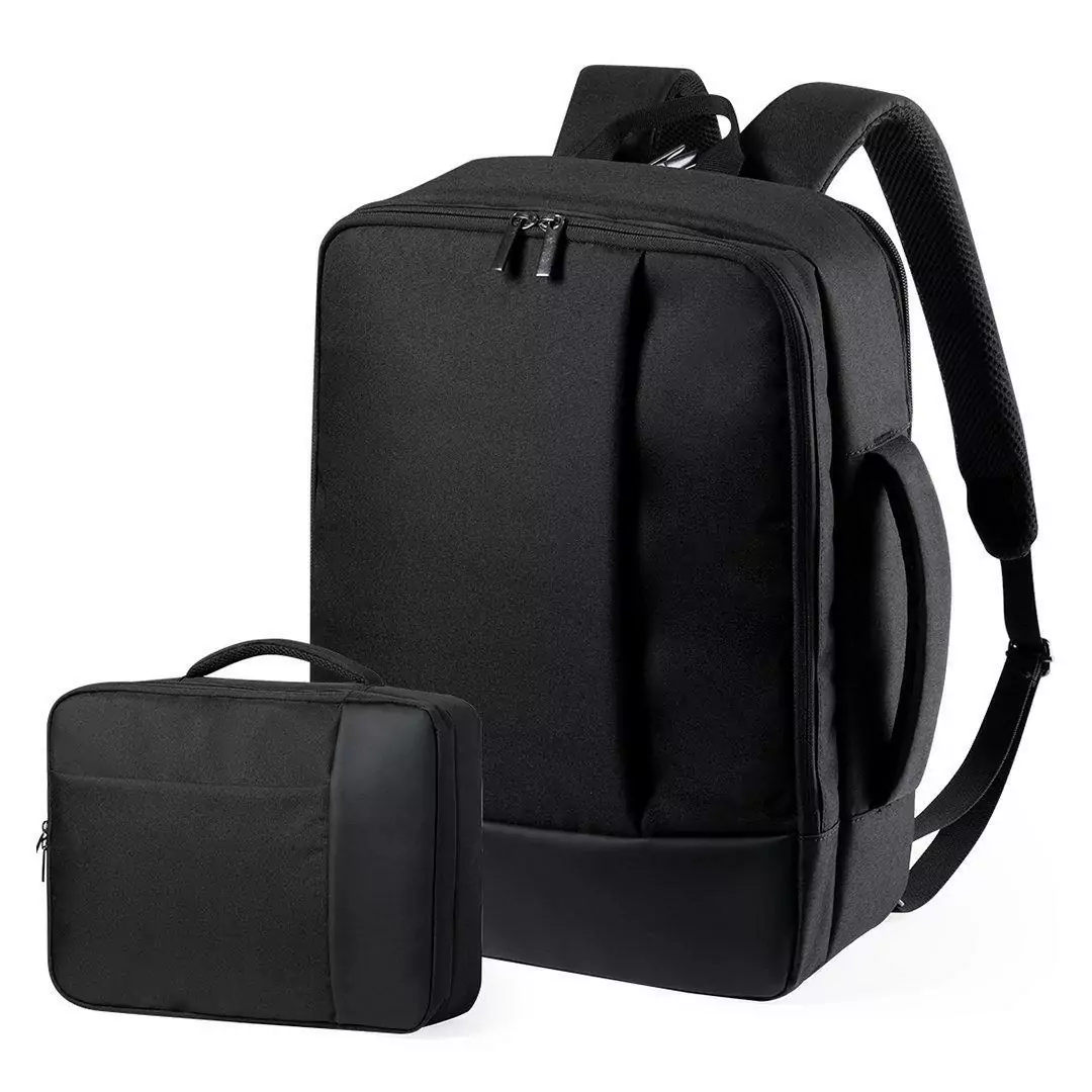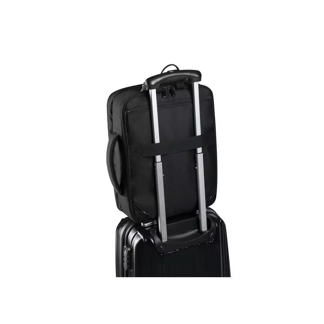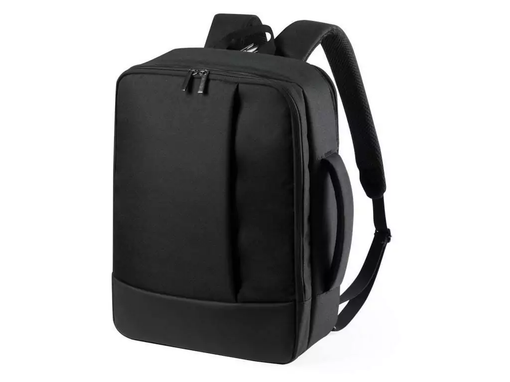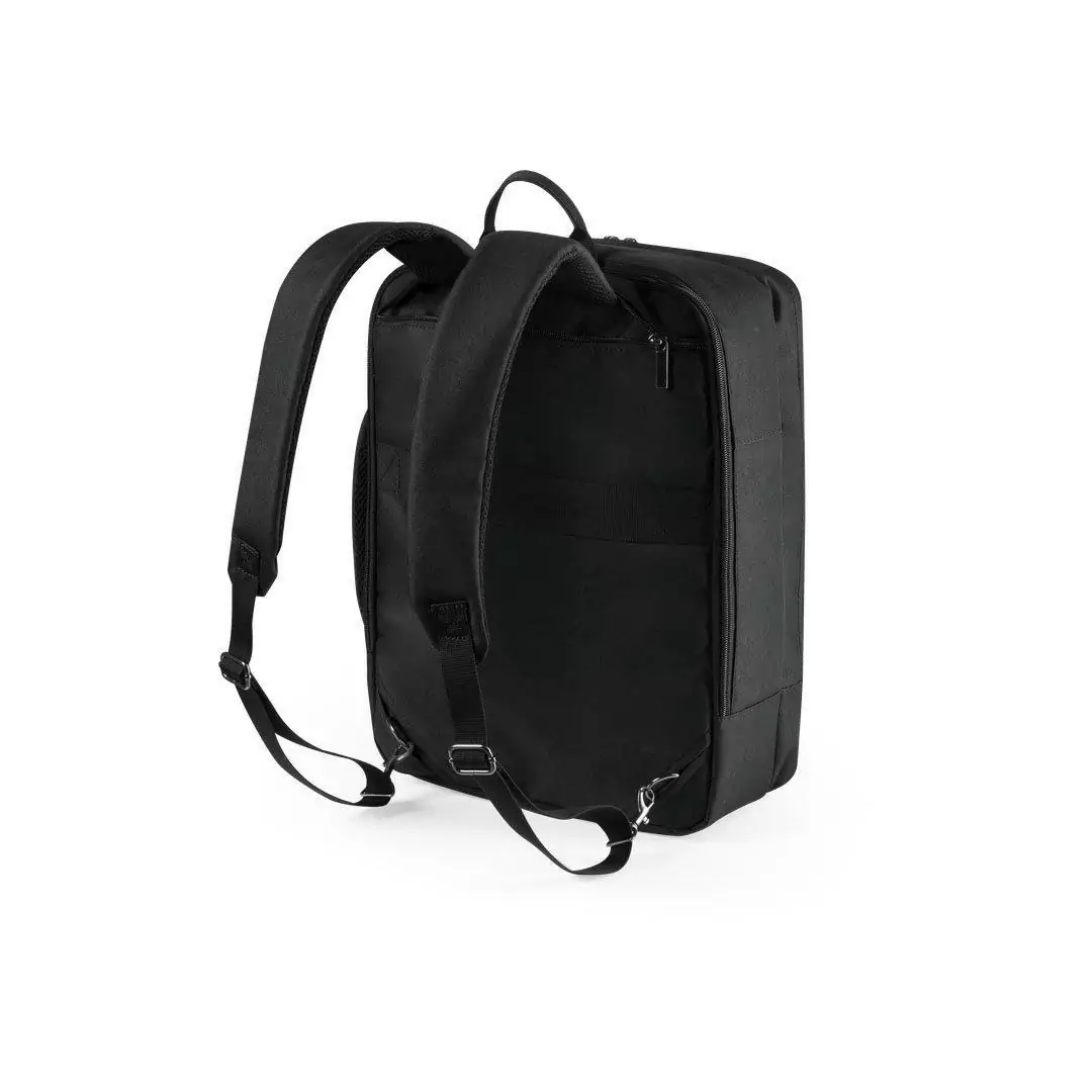 Sac à dos porte documents en polyester 300D résistant avec détails en similicuir. Design urbain, compartiment principal avec fermeture à glissière à double tirette et poche rembourrée pour ordinateurs portables jusqu’à 15 pouces. Bretelles rembourrées et ajustable. Accessoire pour mettre le sac sur la poignée de votre valise à roulette, et la poche pour cacher les sangles au dos lorsqu’il est utilisé comme porte-documents.