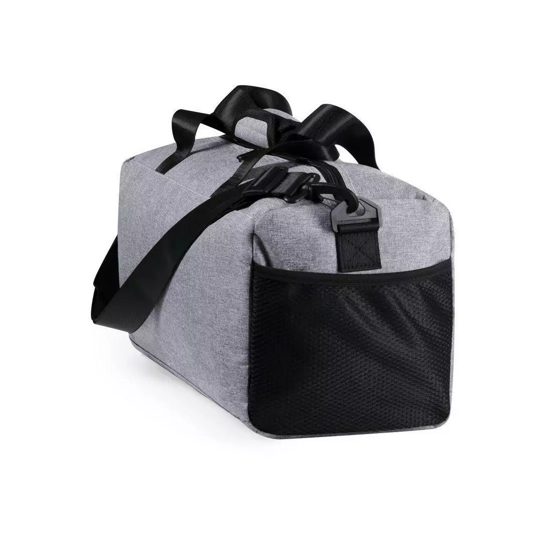 Sac polyvalent en polyester denim 600D résistant et design décontracté bicolore, avec un corps gris et des détails noirs. Compartiment principal avec fermeture zippée et double tirette, poignées en nylon résistant avec renforts et poche latérale en filet. Avec bandoulière réglable.