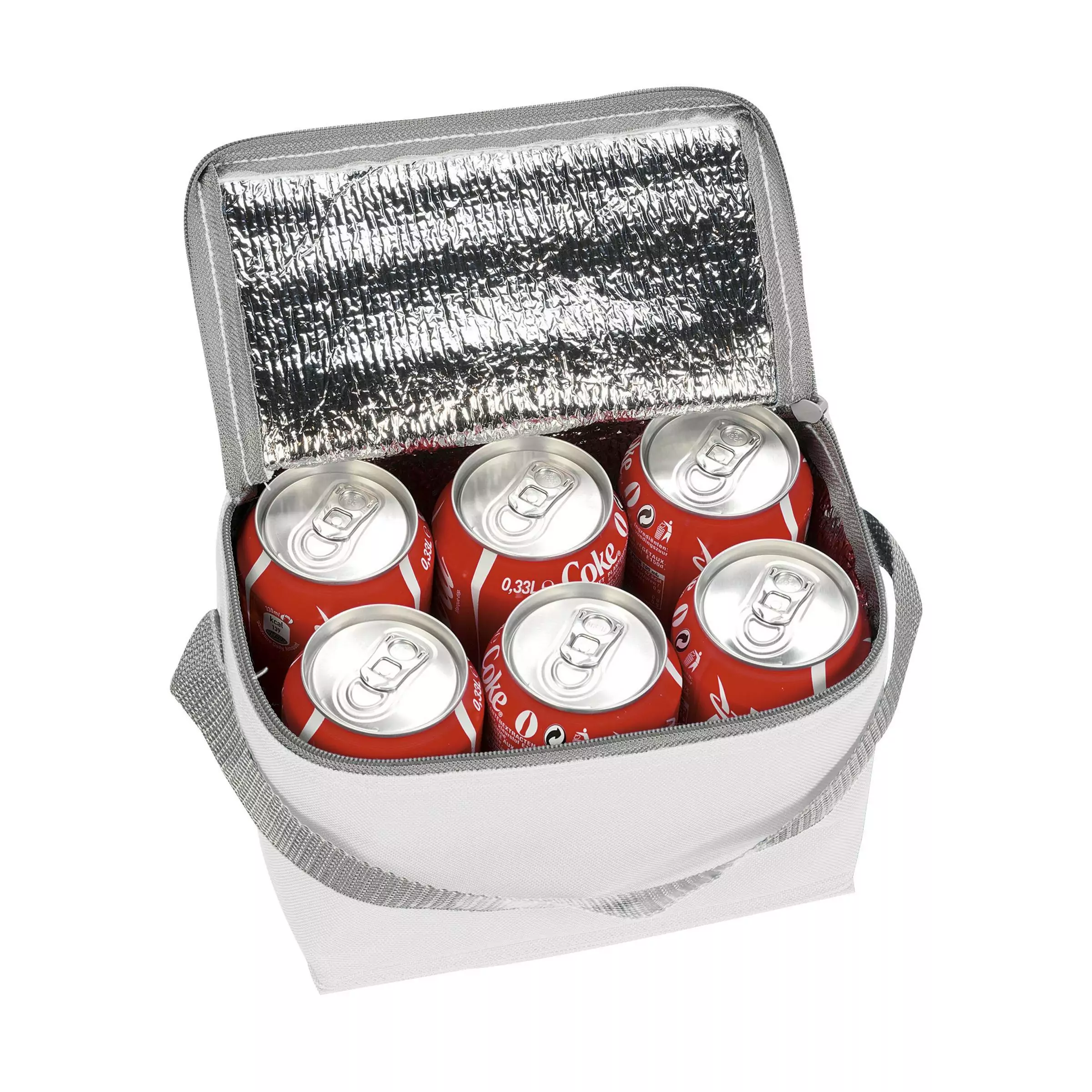 Sac isotherme en polyester 600 D, utilisable pour 6 canettes. Avec bandoulière.