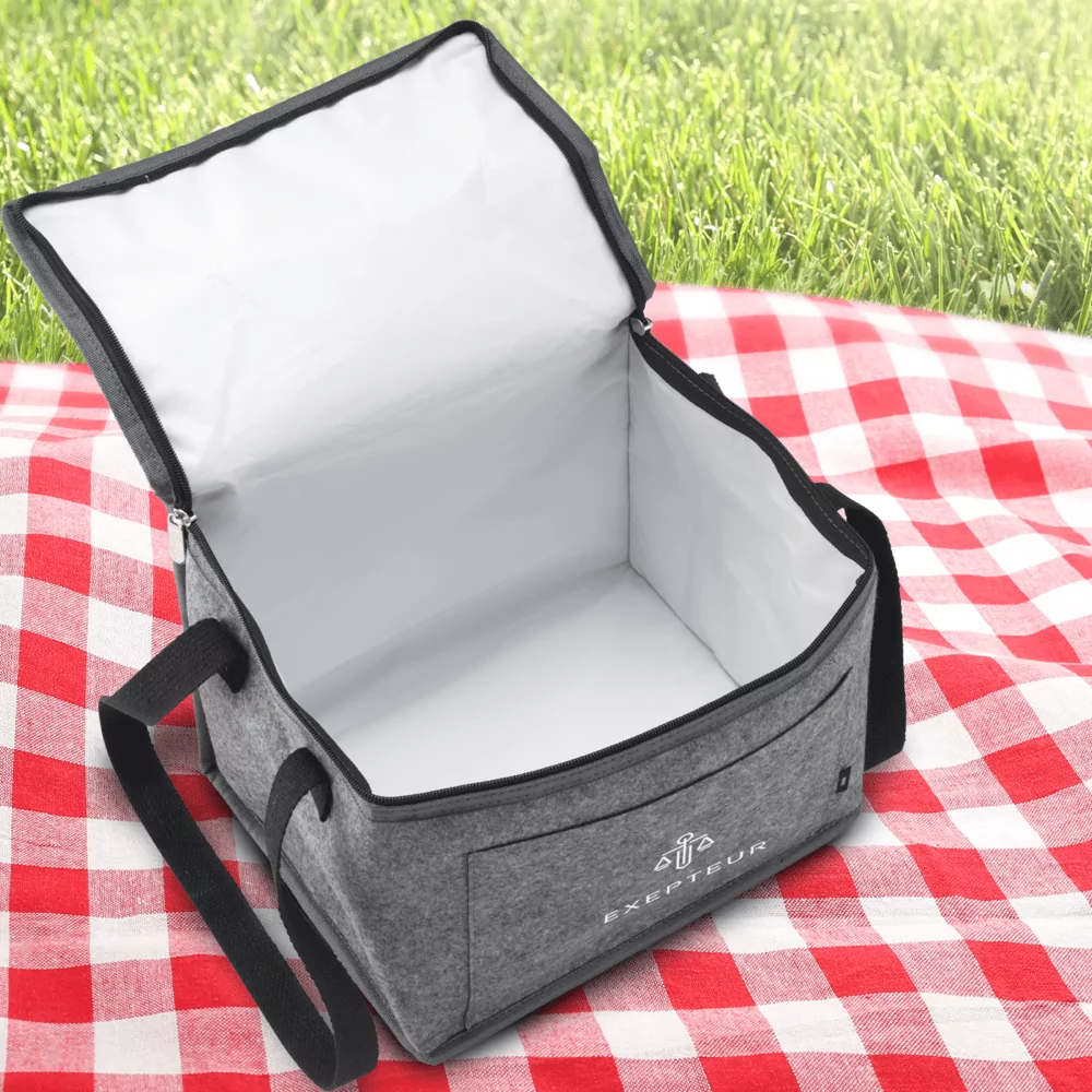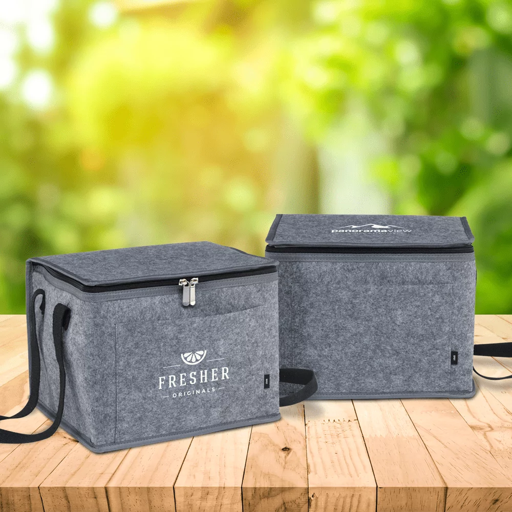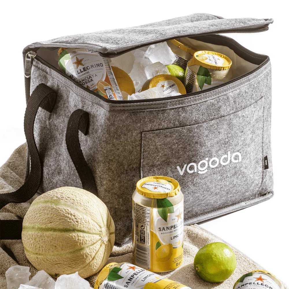 Profitez d’une boisson fraîche et d’une collation fraîche dans le parc avec l’aide de ce sac isotherme RPET. Il est fabriqué à partir de feutre de bouteilles PET recyclées, ce qui en fait un choix conscient évident pour vous et votre organisation. La doublure est en PEVA à 100 % et le sac est équipé de boucles de transport.