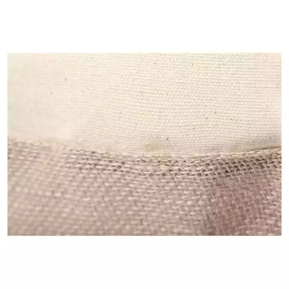 Sac en jute et coton. Taille 48 x 35 + 15 cm, avec finition cousue et longues poignées renforcées de 90 cm de long en coton. Résistance jusqu’à un poids de 9 kg.