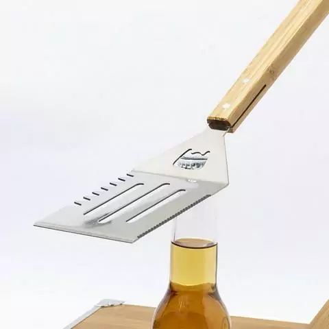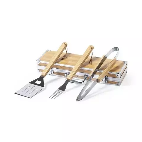 Ce Set barbecue personnalisé et publicitaire est composé d´ustensiles en acier inox avec manche en bois naturel. Présenté dans un étui individuel avec mousse thermoformée à l´intérieur.