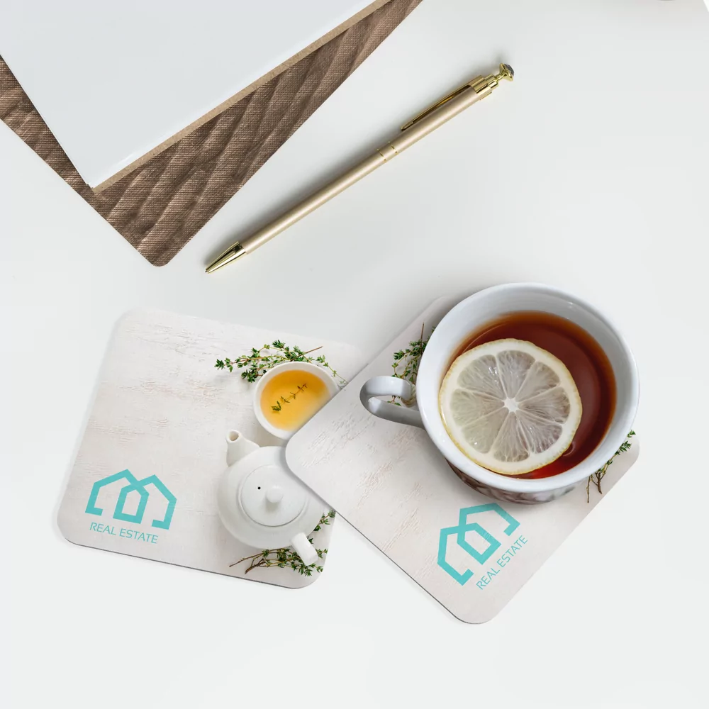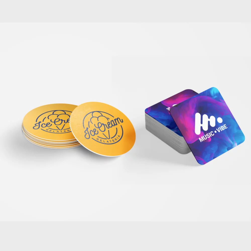 Commandez vos dessous de verres personnalisés chez Helloprint et égayez votre bar ! Vous pouvez les utiliser pour promouvoir les offres spéciales de votre bar ou restaurant. Nos sous-verres sont imprimés avec votre logo ou visuel sur du carton épais à la surface légèrement rugueuse adaptée pour les visuels sans détails très fins. Possibilité d’imprimer sur les deux faces si vous le souhaitez !