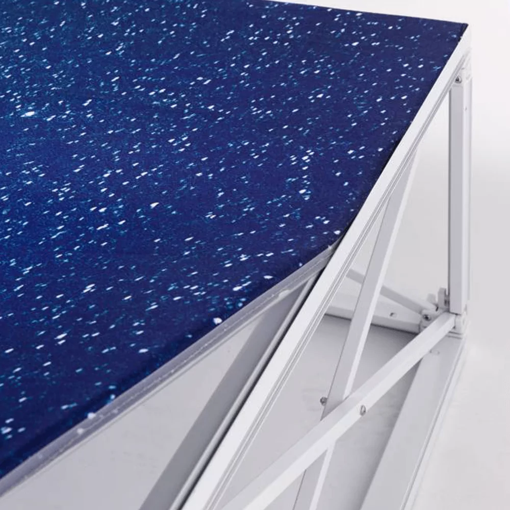 La structure en aluminium blanc de nos stands parapluies LED offre une combinaison idéale de légèreté et de solidité. Cette caractéristique vous permet de mettre en place votre stand rapidement et facilement, sans compromis sur la durabilité. Grâce à sa conception ingénieuse, vous pouvez compter sur une installation sans tracas à chaque salon.