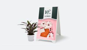 En choisissant ce support, vous avez la possibilité de personnaliser votre message grâce au vinyle électrostatique. Cette caractéristique offre une flexibilité créative pour présenter votre enseigne, vos offres spéciales ou toute information promotionnelle pertinente. De plus, la disposition sur les deux faces du présentoir maximise la portée de votre communication, captant l’attention des passants venant de tous les côtés.