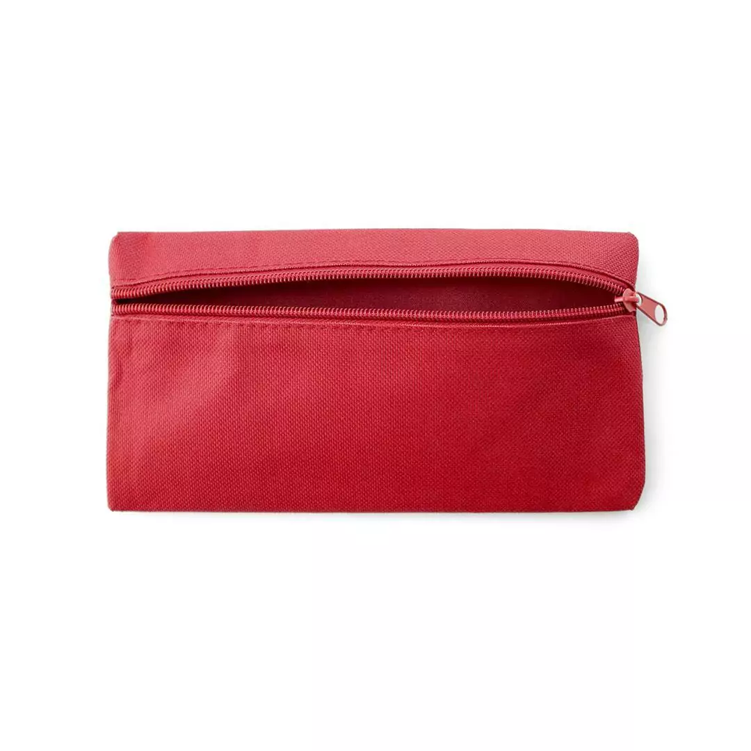 Trousse en polyester 600D avec fermeture zippée assortie sur le devant disponible en coloris vifs et variés.