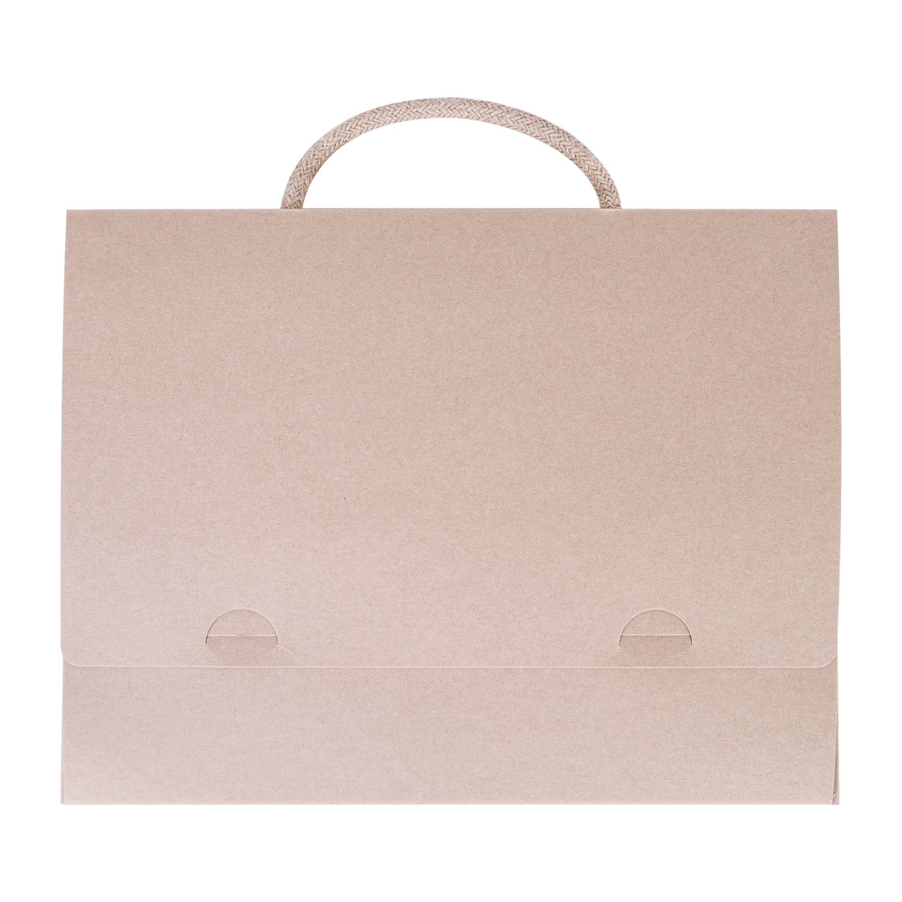 Fabriquée en carton recyclé de 356 gr./m², cette valisette est non seulement respectueuse de l’environnement, mais aussi résistante et pratique. Elle se monte et se démonte facilement grâce à son système de fermeture à encoche, offrant un montage rapide avec sa poignée cordelette. Parfaite pour transporter vos documents ou cadeaux d’affaires, elle se décline en dimensions optimisées : à plat (53,6 x 66,8 cm) et montée (32 x 25 x 3 cm).