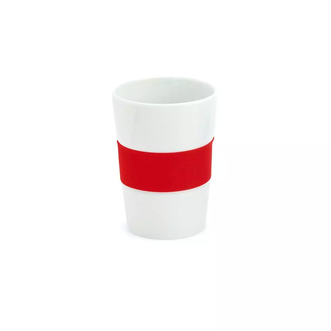 Nous vous proposons ce verre en céramique de 350 ml en plusieurs coloris. Ce verre blanc est entouré d’une bande en silicone coloré au choix : jaune, bleu ou rouge.